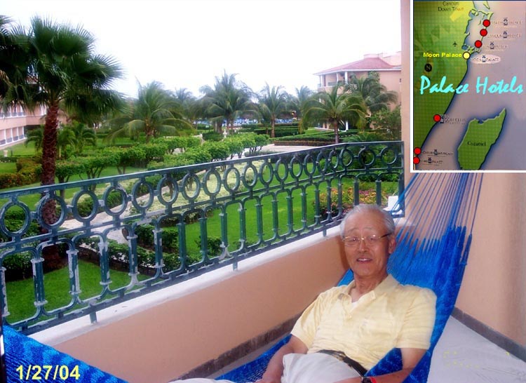 the balcony of Moon Palace Hotel room. Moon Palace Hotel where they stayed